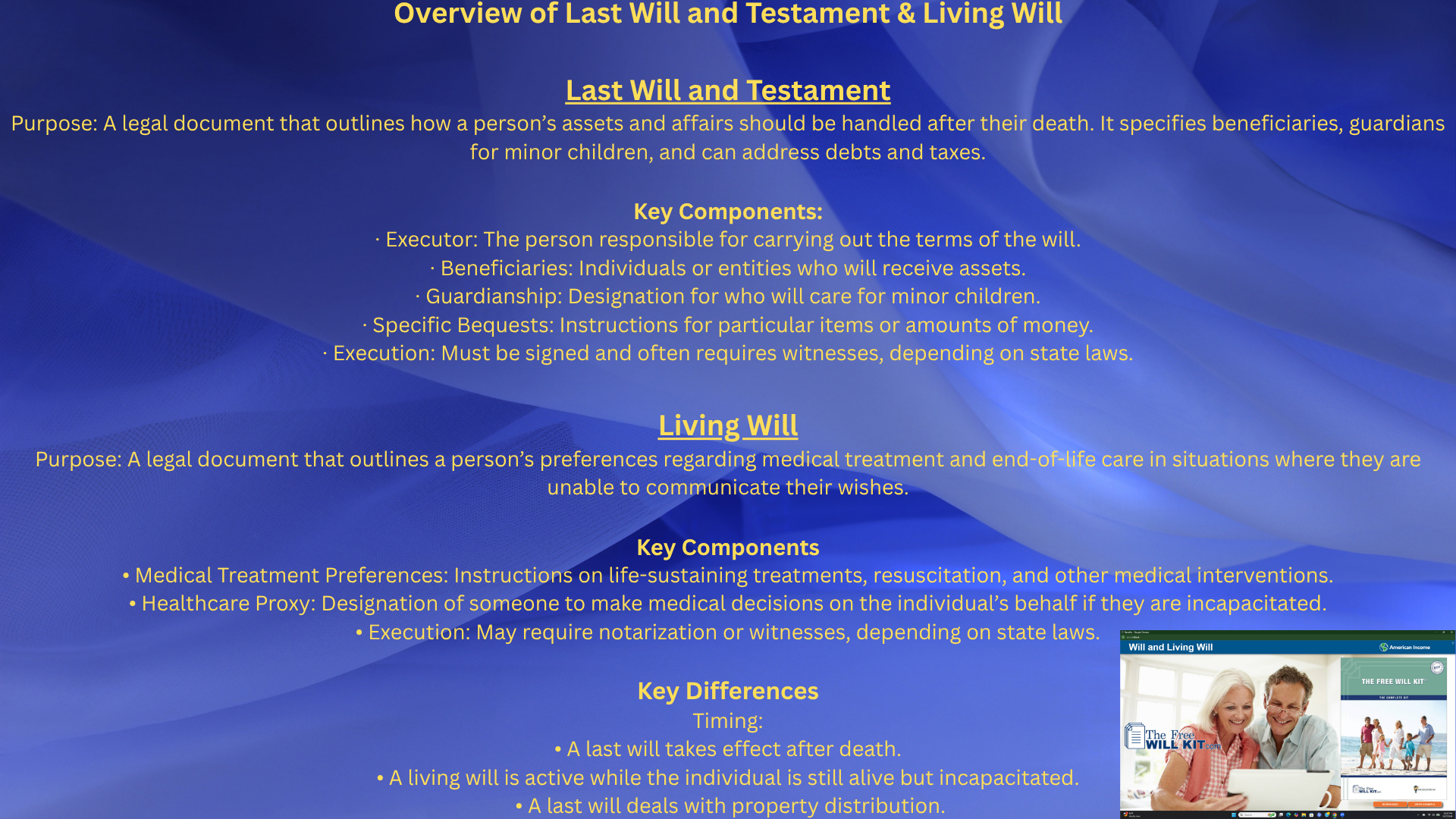 Having both documents in place ensures that your wishes are respected regarding both your assets after death and your medical care while you are still alive.